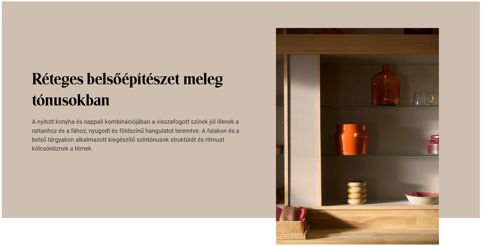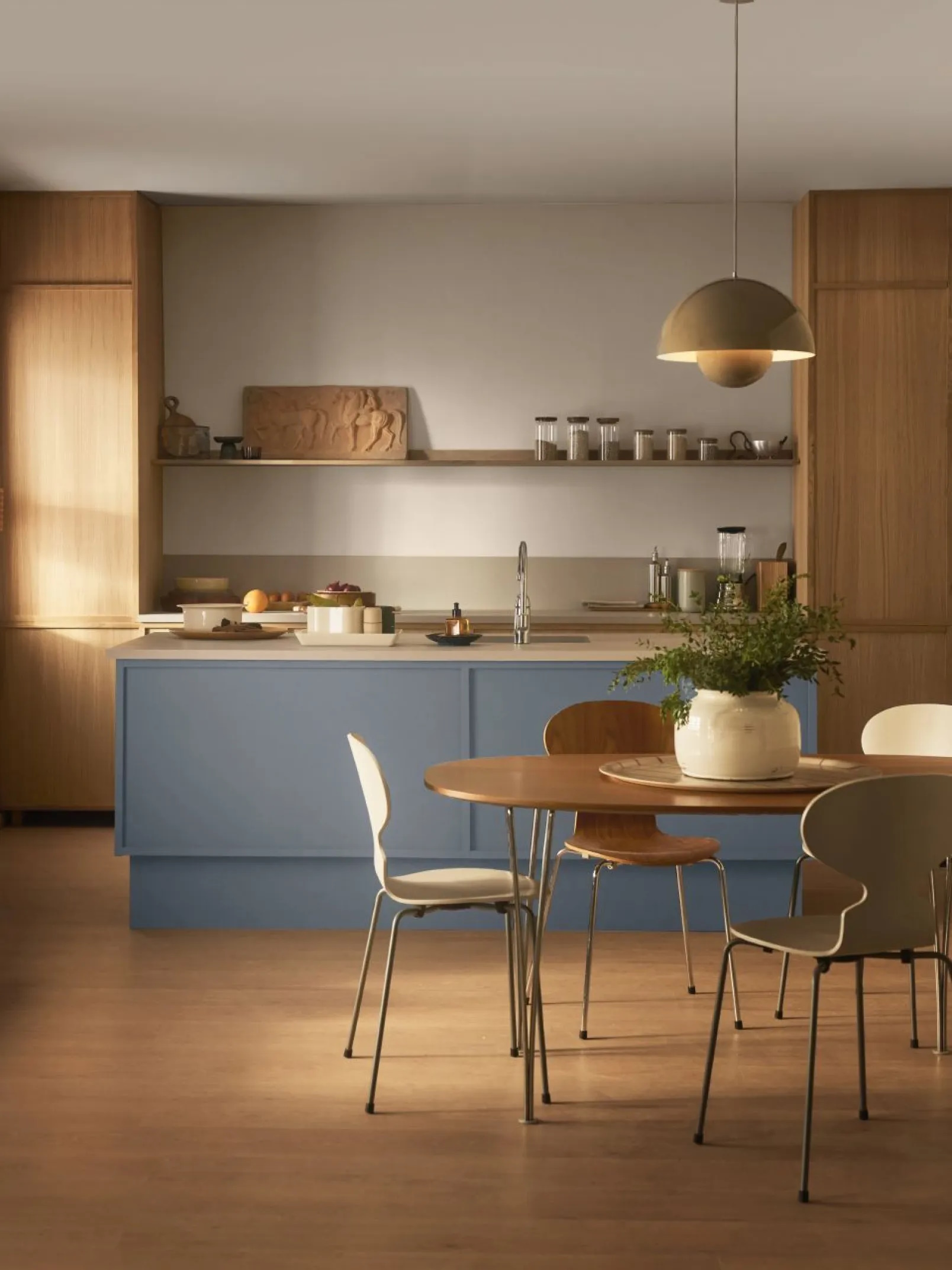A Color Now 2026 színkollekcióval díszített konyha egy időtlen, modern tér példája, ahol minden gondosan megválasztott és nyugodt hatású. A gondosan átgondolt üres tér teret hagy a főzésre és a barátokkal, családdal töltött időre. A kiegyensúlyozott színséma a fa tónusokkal kombinálva otthonos hangulatot teremt.